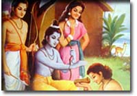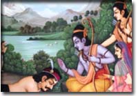 Mutual help is the mark of friendship. Sugreeva stood in need of redemption from banishment and persecution. Further his wife has to be restored to him. His plight was identical with that of Rama in being empireless and bereft of wife. Mutual sympathy was therefore spontaneous. Each was in a position to help the other. Rama agreed to redress the wrongs that Vali had done to Sugreeva his younger brother. But before he launched out into action he wanted to know the cause of the trouble between the two. An undertaking must be backed by truth and righteousness. Sugreeva presented the case saying one demon known as Mayavi once attacked Kishkinda. Both Vali and Sugreeva rushed out to vanquish the offender. Mayavi ran away chased by the brothers. Finding a large cave the enemy entered into it for safety. Vali instructed the brother to keep watch at the mouth of the cave while he pursued the demon in the den. Sugreeva kept vigilant watch for one full year. A rumble resembling the voice of Vali was heard from within the cave. Subsequently blood was flowing out. Sugreeva thought that the asura had slain Vali. So he rolled a big rock and covered the cave to prevent the enemy from coming out. Pressed by the ministers Sugreeva assumed the throne of Vali. But actually what happened within the cave was that Vali managed to kill Mayavi. When the victor wanted to come out he found the mouth blocked. With great difficulty he pushed aside the boulder and came out with boiling anger. To add to his bitterness he found Sugreeva occupying his throne. Explanations were all rejected. Sugreeva's wife was forcibly taken possession of and he was banished from the kingdom. It was possible for Rama alone to set right this tragedy.