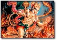 It was only because of Ravana's inordinate love for Sita he was able to tolerate the inexcusable statement of Sita's. He gave her two month's time. Sita was very clear to him that nobody other than him has spoken to Rama's wife in such a manner. She had all the powers to burn him to ashes with her chastity and only out of pity she has spared him. Rama's arrow however will deal with Ravana fittingly for his intolerable sin. Ravana now flared up like a wounded lion. His lips quivered and eyes got blood shot. Still he partially composed himself and gave orders to the hideous demonesses that kept watch over Sita to somehow win over that woman with threats and cajolements alternatively. Then he moved away majestically with his attendant wives. The words Ravana and Rudra are derived from the root Rud which means to cause cry. There are two types of crying- one, the worldly and the other godly. Both the forces created the situation for sorrow and then supply the actual need of the distressed. All weeping and wailing connected with the mundane is induced by the Ravana force. Ravana used to carry away many a woman by force thereby creating pang in her. Then he consoled her by supplying with all possible earthly pomp, power and pleasure. No one could resist the temptations profusely offered by him. The concealed Hanuman finds an exception in Sita. She was apparently imprisoned and harassed by Ravana. But neither his abduction nor his offer of extraordinary earthly position could have any effect on Sita. She was made of a metal supremely above all mundane concerns. She remained unaffected by all earthly pains and pleasures. She suffered from a self created pang for reunion with her Lord. It was the separation that brought out this divine element in her. It was the Rudra force that revealed her character in its original purity. The beauty of that character stands on its own pedestal.