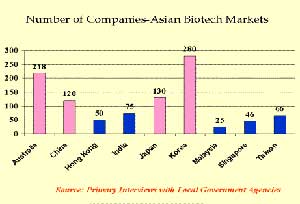 | Percentage in world market | India in 2003 was ranked 3rd in the Asia-Pacific region and 11th in the world in the number of biotech enterprises |