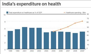 Indian Government Expenditure on health care is the highest amongst all the developing countries. The expenses of this industry comprise 5.25% of the GDP. There are even chances that the health care market could experience a hike and attain a figure ranging between $53 to $73 billion five years later. Which would in turn reflect an increase in the gross domestic product to 6.2%. The Indian Health Care Industry earns revenues accounting for 5.2% of gross domestic product. | ![]() |