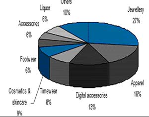 - In the year 2006-2007 due to the increase in purchasing parity of the middle class and surging income levels resulted in consumption growth of gems and jewellry for about 11% in the 5 years. The Industry also contributes over 15% of the total exports of country and provides employment to 1.3 million people directly and indirectly. The contribution of gold jewellery is about 80% of the total jewellery market, with the balance comprising fabricated studded jewellery, which includes diamonds as well as gemstone studded jewellery.