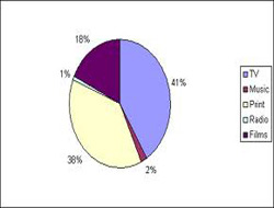 | Size of the Industry | Over the years the number of private satellite TV channels has grown astronomically, from 1 TV channel in 2000 to 394 TV channels in 2009. Current size: Rs 14,800 crore, Projected size by 2010: Rs 42,700 crore and CAGR: 24% |