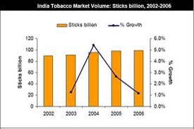 The Indian tobacco market generated total revenues of $9.9 billion in 2007, it represents a compound annual growth rate (CAGR) of 6.6% for the five-year period spanning 2003-2007.