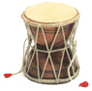 IKhol is usually used traditionally for accompanying Bhajans and Kirtans. Its high skin is relatively small with a diameter of about 9 - 10 cm, which gives it a particularly high, piercing sound. |