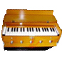 Harmonium usually belongs to the family of free-reed aerophones. The instrument is a small, tabletop size organ which has bellows at the back that is pumped by one hand while the other hand plays the keyboard. |