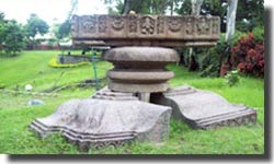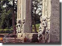 Da-Parbatia Temple in Tezpur Assam is the oldest and finest representation s of sculptural or iconoclastic art in Assam which is in the form of the ruins of the door-frame of the Da-parbatia temple. The carvings of Da-Parbatia temple here display the characteristic style of the early Gupta School of sculpture. The studded two legs of the door-frame have the carvings of the two Goddesses Ganga and Yamuna. Both of them which are standing at the bottom with garlands in their hands. The whole frame is elaborately very well decorated with beautiful ornamental foliage.