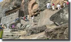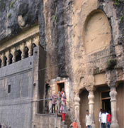 On entering the temple you step into a huge hall which is around 50 feet wide and 60 feet long carved on a single rock with no pillar in between area. There are around 187 small meditation rooms inside the temple. The main temple is supported by around 6 stone pillars which has beautiful carvings and inscriptions. This idol can be worshipped by anyone here. Though there is no electric light available in the temple sun light always falls in the temple through out the day. During the festivals of Magh Shudh Chaturthi and Bhadrapada huge crowds are seen in the temple.