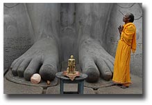 The temple of Shravanabelagola is located 51 km south east of Hassan in Karnataka at an Altitude of about 3350 feet above sea level. There are excellent roads from Bangalore and Mysore. The nearest airport is Banglore which at a distance of 157 km. and the nearest railway station is Hassan. It is a little township tucked away between Indragiri and Chandragiri hills.
