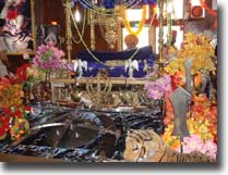 Gurudwara Sri Hemkund Sahib is the gurudwara which is set amidst towering snow-capped mountains and lying beside a lake of pristine blue water. The Sikh shrine of Sri Hemkunt Sahib looks, even to the not-particularly-pious, a place of almost unbelievable beauty and peace. Seven peaks - known as the Sapt Sring- surround the shrine, looming over lush green pastures. The lake's rocky shores are covered with snow through most of the year, but when the snow melts, the almost mythical yellow-green flower known as the Brahma Kamal, the `Lotus of the Gods', blooms amidst the rocks. It's a place of a rather wild and untamed beauty- and one of Sikhism's most important shrines.