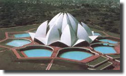 As in the legend of Buddhist folklore the Boddhisatva Avalokiteswara is represented and believed to be born from a lotus, and is usually depicted as standing or sitting on a lotus pedestal and holding a lotus bloom in his hand. Buddhists glorify him in their prayers, "Om Mani Padme Hum", "Yea, Oh Jewel in the Lotus!" Lord Buddha says you have to be like a lotus which, although living in dirty water, still remains beautiful and undefiled by its surroundings. So, we realise that the lotus is associated with worship, and has been a part of the life and thoughts of Indians through the ages. It will seem to them as though they have been worshipping in this Temple in their dreams for years. Now their vision has become a reality and God willing, some day they will all enter and worship in it.
