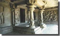 Cave Temples were excavated by scooping out the scarp of the hill. The scooping work starts from front to back. The famous cave temple is usually divided into inner and outer mandapas, distinguished by the difference in levels. The front mandapa will have pillars and plasters numbering 4,6,8,10. The inner mandapa contains single, triple or five cells. The cave temple with this little modification is categorized as Mamalla style. The pillars under this style are slender and taller with squatting lion at their base.