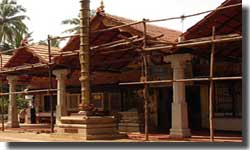 The temple which is believed to have been built over a thousand years ago, opens only once in a year on Chitrapournami and the travel to the temple from Kumily, a 15 km stretch inside the forest, is arranged on jeeps and taxis. The name Mangalore is derived from Goddess Mangaladevi and in kannada it is called as Mangalooru and it translates as Mangala - Ooru or Mangala's town.