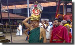Decoration is the only rite that is performed to the idol of Mookambika temple. All the other rituals like abhisheka and aradana are performed only to the Lingam. The theertham for abisheka is brought from the Sauparnika river.