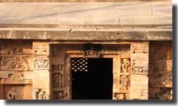 The duel about 13 m high has no platform and is triratha on plan; it is a dominant style of the early periods. The temple passes on the stage of Saliva Pasupata Sect, which is illustrated by the frequent representation of Lakulisa. He is sculpted into the Buddha-like form, with four disciples at his feet as shown on the last side of the tower, while on the West, above the relief of Nataraja, he looks like the meditating Buddha.