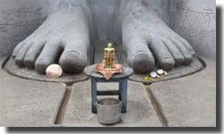 The main treat however is at the end when a helicopter throws loads of flower petals on the statue. Not to be missed site. Besides the statue of Gomteshwara there are many Jain temples and Maths on the Indragiri hill, makes a good trekking adventure. |