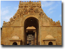 Thanjavur is known to be an important center of South Indian art and architecture. Most of the Great Living Chola Temples which are UNESCO World Heritage Monuments are located in and around the place of Thanjavur. The foremost among the Great Living Chola temples, the Brihadeeswara Temple is located in the center of the city. The name of place Thanjavur is knwon to have been derived from the word "Tanjan", an asura in Hindu myth, who is believed to have been killed at this spot by the Hindu god Vishnu.Also the name is believed to have been derived from Than-sei-oor, it means the place is surrounded by rivers and green paddy fields. The name also may have came from the word asylum (Thanjam) as the Chola king Karikalan had to shift the capital as sea inundated their capital city of Poompuhar.