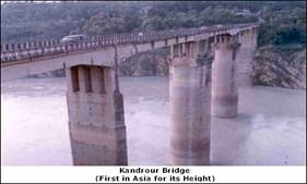 Kandrour Bridge at a distance of about 8kms from Bilaspur is one of the highest bridges in the world and it also ranks first in Asia. It took nearly 6 years to construct this bridge. The bridge is about 280 meters with a breadth of about seven meters and the height above the lowest river bed below is about 80 meters.