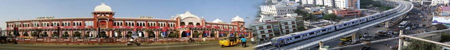 There are two major railway stations in Chennai. Chennai Central is the bigger one which is broad gauge connecting to all major cities and towns of India. The Egmore station is the starting point for meter gauge and broad gauge trains proceeding to destinations within the state as well as trains to neighbouring Kerala.