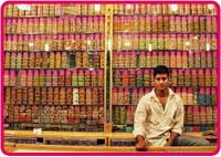 The main monogram of Charminar is the hustle and bustle and flocked by shoppers. Charminar is always filled with an assorted crowd with the streets dotted with shops and wares displayed on the pavements too for the shopper's convenience. At Charminar there are bangles of different varieties and rates based on the size their pocket can buy- bangles ranging from hundreds to thousands. Lac bangles are the specialty of Hyderabad which is studded with colorful semi precious stones and artificial diamonds are found in abundance in the shops of Charminar.Apart from the Lac bangles, Charminar is also known for other bangles of different makes like glass, metal, brass and silver bangles which are also the specialties of Laad bazaar. There is one full lane in Charminar with hundreds of shops entirely dedicated to bangles. Charminar is the only place in the whole country where we can spot more than 40 bangle shops enclosed in one area. Not only the show- cased stores but also the mobile push carts and street side vendors also display an overwhelming and startling variety of bangles.