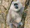 The gray langurs are plant eating animals and feed on leaves, fruits, flowers, shoots, buds, coniferous needles,