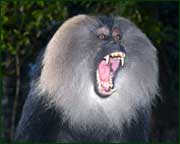 other monkeys and at night they spend at the top of the forest. They are found in groups of 10 to 30 animals which comprises of a male, many females and their off springs. Their call can be like screams, growls, gestures and many more depending on the situation. Usually they eat food by stuffing them on their cheek pouches. They stay away from humans since they turn aggressive all of a sudden.