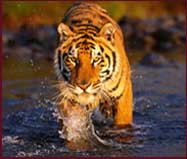 The Indian tiger is said to be the "Guardian of the jungle", the one who is the vehicle for the Mother Goddess Durga. He is proficient of invoking Indra, the god of Thunder and Rain and thereby controls the drought. He is capable of protecting, guarding and killing others if he thinks someone doesn't adhere or break the laws of his jungle. The Royal Bengal tiger is recognized as a sign of strength, power, speed and agility. He is in fact viewed as 'Officer of God', guarding the young people, curing the sick and grueling the offender. Other personification of the Mother Goddess Durga, is depicted as riding a tiger.Goddess Durga took an avatar to the earth as a joint force of all the Gods, to fight against the evil power of the demon, Mahishasur. Obviously, the joint powers of all the Gods, Durga has chosen the right vehicle for her freight. In the coastline of Southern India, people have the tradition of Tiger dance inorder to celebrate the birth of Lord Krishna on Janmashtami. The people paint themselves with the black and yellow stripes trying to look like a tiger. They conduct a contest for the tiger dance and prizes are distributed.