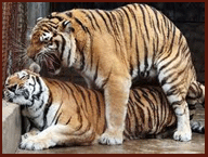 When the male nears the mate-ready female he may or may not respond to the female tiger's roar and the couple begins their courtship by rotating each other and roaring.
