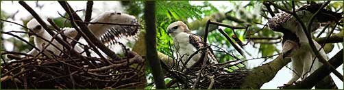 The Crested Hawk eagle used to breed between December and April. Most of these species lay the eggs in January or mid February. These species has a restricted courtship display. These crested hawk eagles used to build their nest in a large tree. It builds its nest by using sticks, lined with fresh green leaves and rim. Usually, in these species pair has only one nest. These nests are used by the same pair year after year.