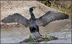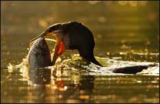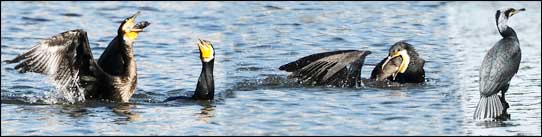The Great Cormorants are considered as a competitor by fishermen. The Great cormorant has been persecuted by them. It has good fishing ability. It sometimes helps humans to catch the fish without swallowing. Great Cormorants' feathers allow air to escape and water to penetrate the plumage.