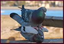 Usually Rock Pigeons do not migrate. If they are misplaced from a nesting area, they have very good homing capability and can return home correctly from any distances. This ability helps them to find their own nests in different cliffs covered in large and various colonies amongst other similar nests throughout the city.