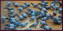 Since pigeons are very much used to humans, they often seem semi-tame and will approach the passerby for food without any restriction or fear. The Large flocks of pigeons are constantly searching for food and the birds will sleep or take rest in close contact with one another.