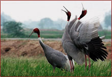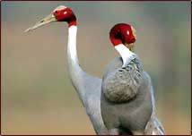 These species are considered as one of the scared species in the world and these birds are left unharmed traditionally. Many Indian farmers think that these cranes will damage the crops especially rice by standing on them. Because of this attitude, famers don't allow these species in the agricultural sites which is another major reason for the threats of sarus crane.