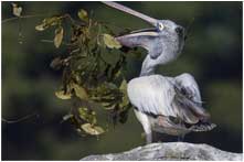 After that, female also does like that. After this, both male and female pelicans clap their bill loudly and bow at each other to show their acknowledgement. Then, the male pelican holds the neck of the female pelican between its mandibles and mounts the female's back and keep its wings spread and outstretched during mating. After the mating is completed, the male release the neck of its partner.