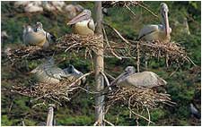 The Pelican starts breeding when sufficient water is present in the lakes. The Spot billed Pelican spends 3 to 5 days to get settled. In these days, it searches a nest for its breeding activity. The Pelican develops a yellow skin around its pinkish red eyes. Both female and male pelicans develop this yellow skin with dark brownish spots on its body during this time. The Male Pelican first swings his head up and down to show his interest.